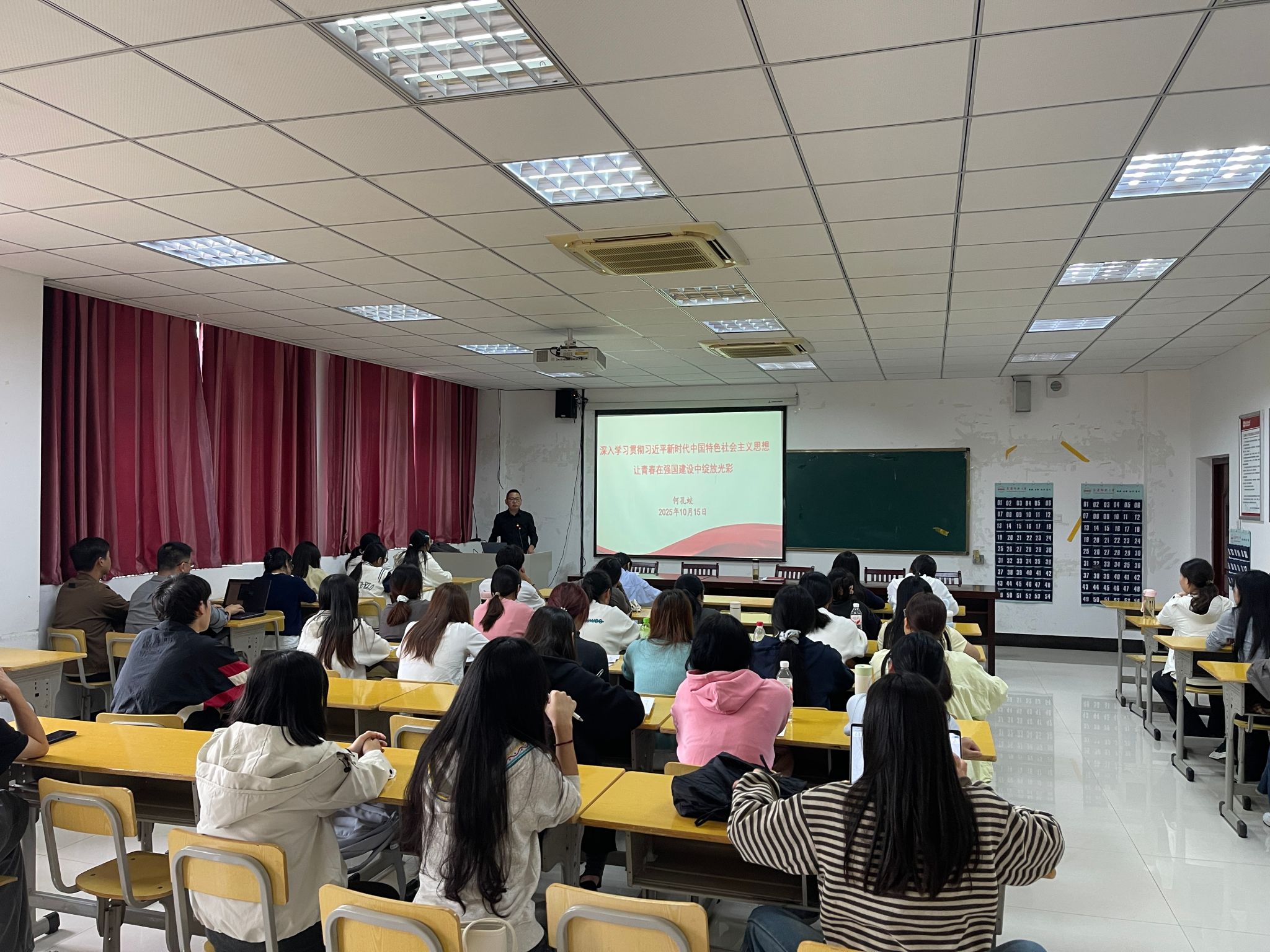 开班后,何孔蛟以“深入学习贯彻习近平新时代中国特色社会主义思想,让青春在强国建设中绽放光彩”为主题给全体学员上专题党课。他阐述了习近平新时代中国特色社会主义思想创立的时代背景和思想渊源,习近平新时代中国特色社会主义思想的科学体系、核心要义和实践要求,习近平新时代中国特色社会主义思想的世界观、方法论和贯穿其中的立场观点方法,习近平新时代中国特色社会主义思想创立的重大意义等,勉励入党积极分子坚定理想信念,厚植家国情怀,勇担历史使命,争做有理想、敢担当、能吃苦、肯奋斗的新时代好青年,在新时代的征程中绽放出更加绚丽的青春光彩。(撰稿、摄影:汪洋洋 审核:何孔蛟)