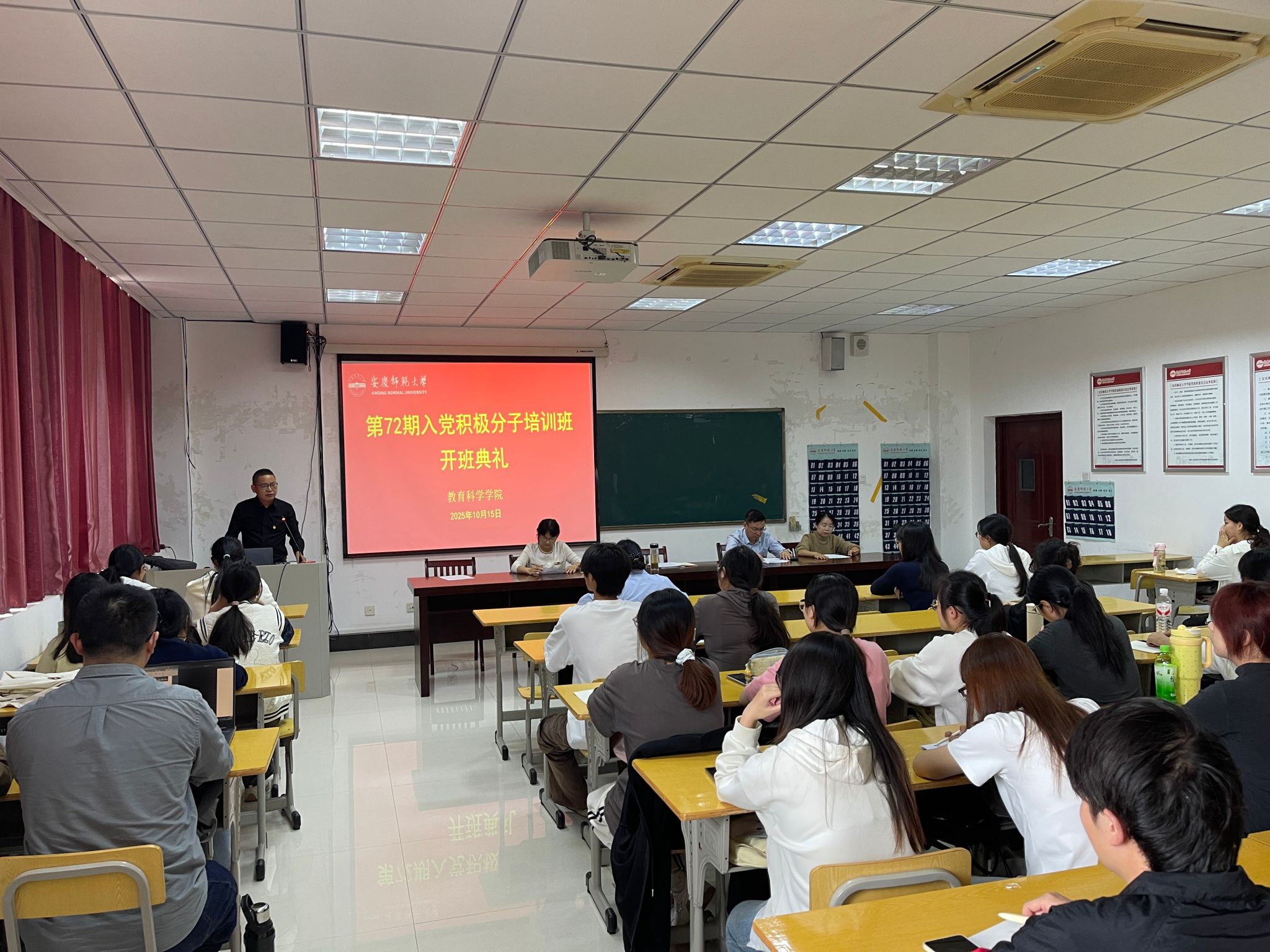 10月15日,太阳成城集团在J305教室举行第72期入党积极分子培训班开班典礼暨第一次专题党课。学院党委书记何孔蛟,党委副书记许世平,各学生党支部书记出席培训会。第72期全体入党积极分子参加会议。开班典礼由党委秘书汪洋洋主持。