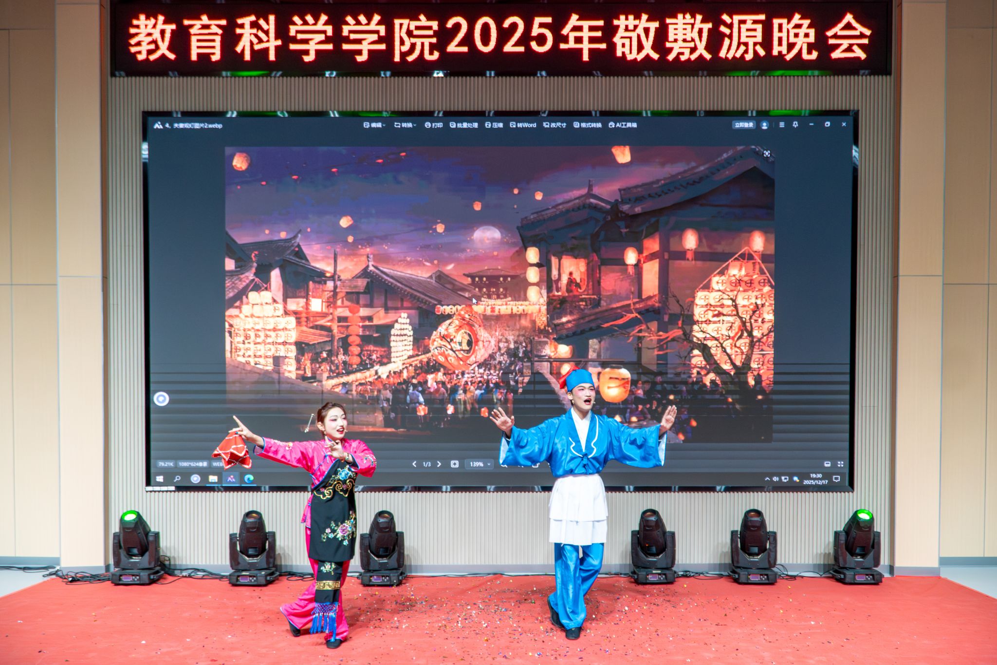 跟着歌曲节奏轻声哼唱、拍照记录节目精彩瞬间、鼓掌为喜欢的节目“应援”……小学教育专业2025级(2)班的汪娟娟沉浸在异彩纷呈的晚会表演中,她对小品《时间都去哪儿了》印象最为深刻。“小品以诙谐的情节、贴近校园生活的桥段,把拖延的负面影响演绎得淋漓尽致。”汪娟娟笑着说。她直言,小品在风趣幽默的情节中蕴藏着深刻的道理,让她感受到珍惜时间的重要性。