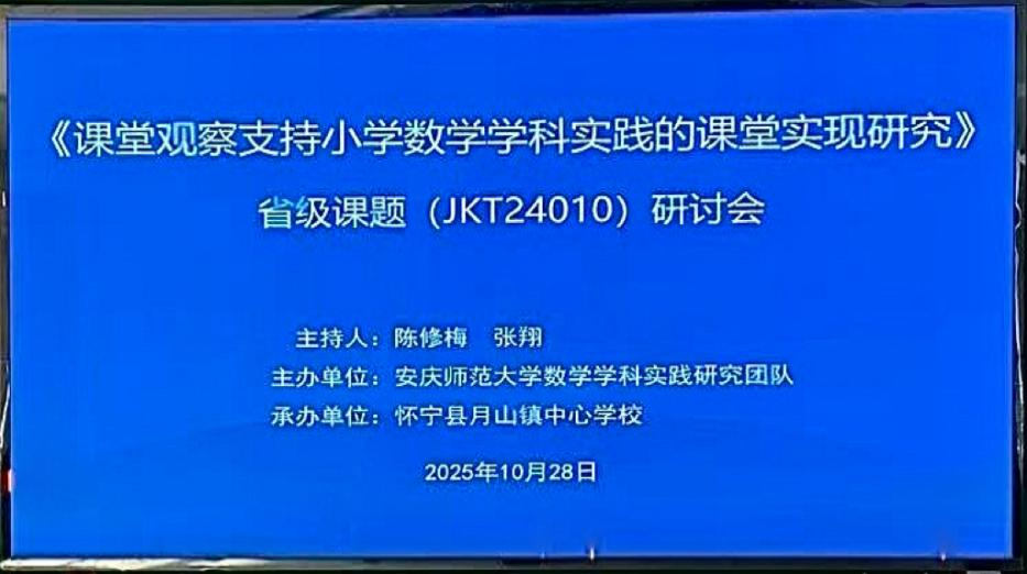 10月28日下午,太阳成城集团陈修梅副教授、安庆石化三小张翔主任带领小学教育专业25级研究生,赴怀宁县月山镇中心学校开展数学概念学科实践专项活动。本次活动既是研究生专业课程《课堂观察与评价》的实操环节,也是安徽省教育科学研究课题《课堂观察支持小学数学学科实践的课堂实现》的专项研究内容。